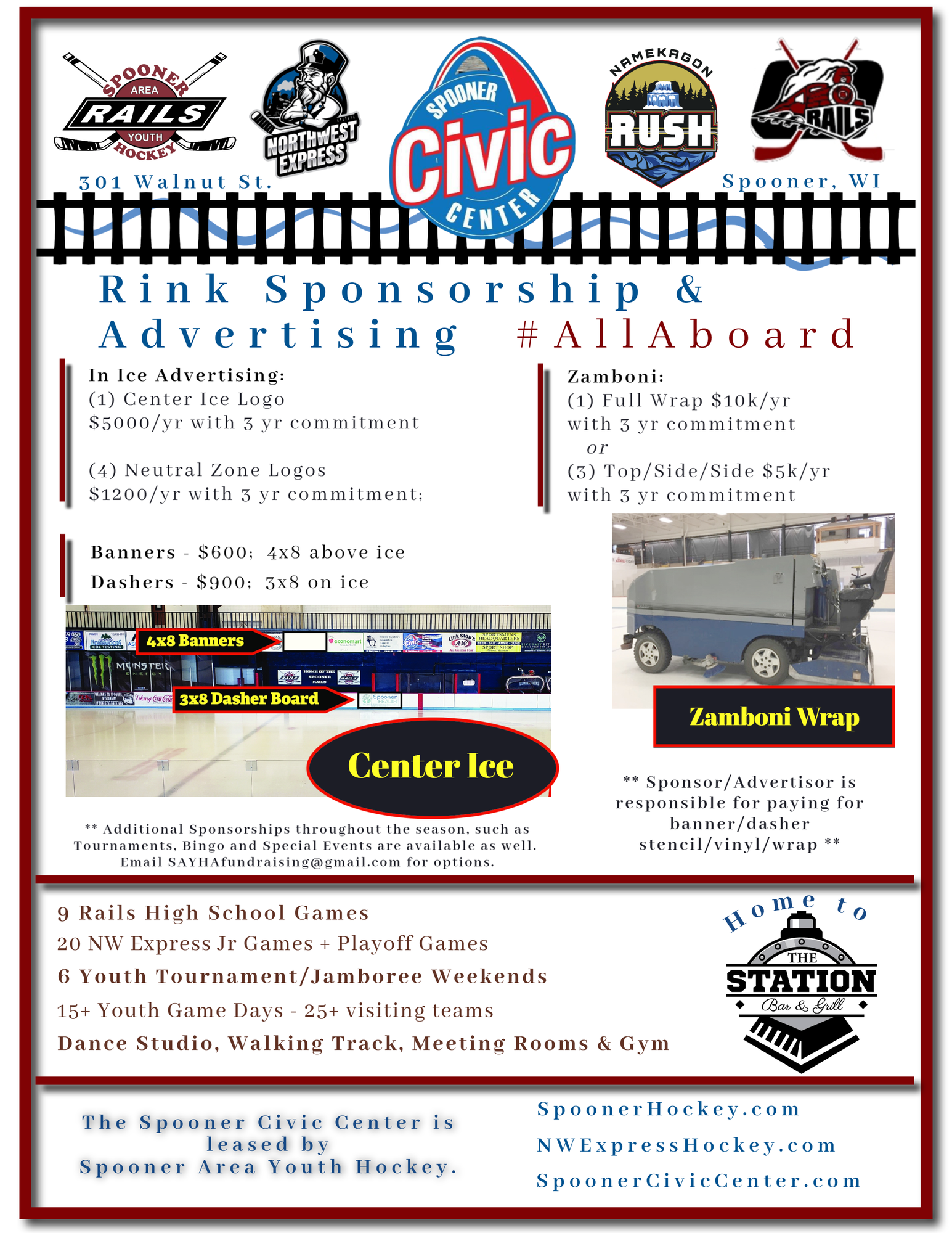 The Mission of the Spooner Area Youth Hockey Association is to develop a sustainable hockey program with multiple teams at every level that will support a varsity high school hockey team in Washburn County, Wisconsin.