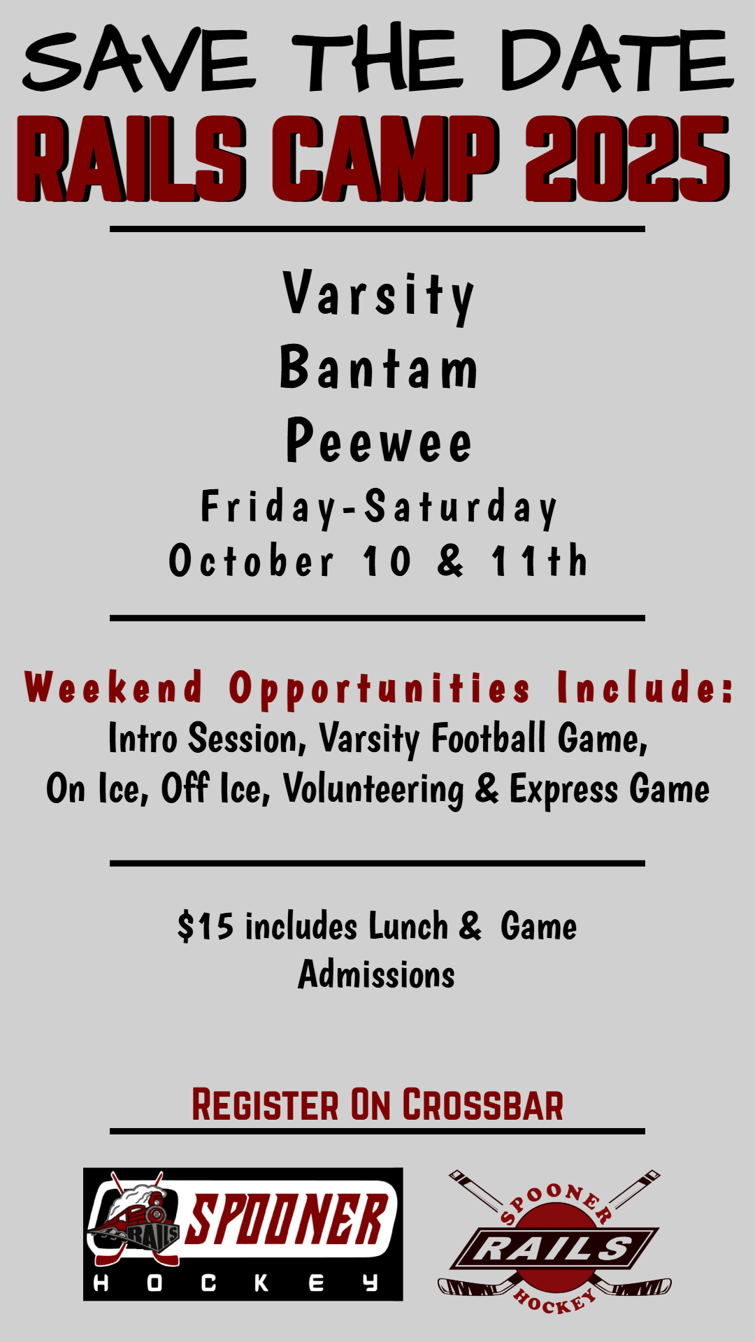 $15 registration fee to cover lunch and game admissions.